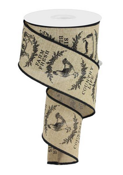 2.5" Farm House Animals Ribbon: Beige & Black (10 Yards)...