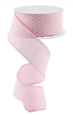 1.5"X10yd Raised White Swiss Dots On Pink Royal Wired Ribbon