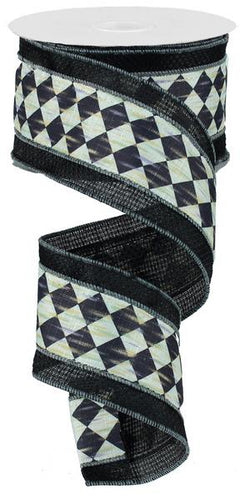 2.5" Wide Expressions Antique Diamond Harlequin Satin Wired Ribbon Black,...