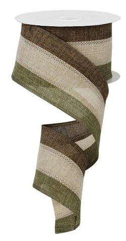 2.5" Wide Expressions Royal Canvas Tri-Color Striped Wired Ribbon Moss,...