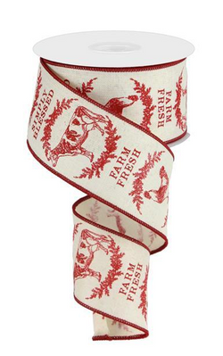 2.5" Farm House Animals Ribbon: Cream & Red (10 Yards)...