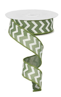 1.5" x 10 yd White Chevron on Moss Green Wired...