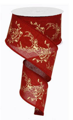2.5" x 10 yd Christmas Ribbon Gold Deer Head on...