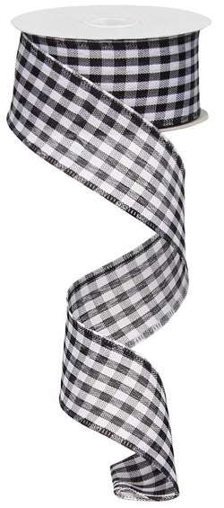 1.5"X50yd Black and White Gingham Check-Wired Ribbon