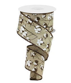 2.5" Cotton Pod Ribbon: Natural Beige & White (10 Yards)...