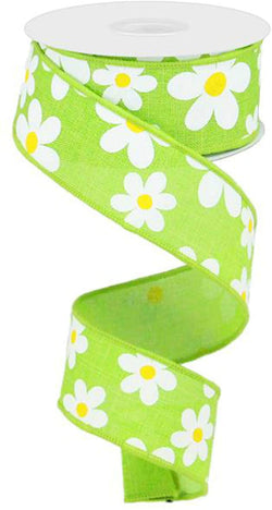 1.5" Flower Daisy Ribbon: Lime Green (10 Yards) Summer Spring...