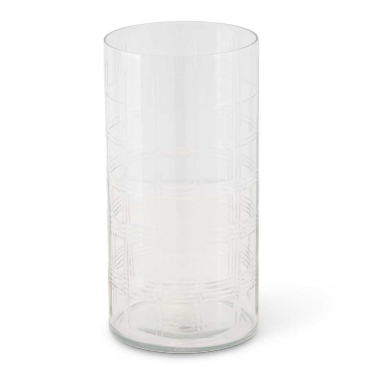 12 Inch Etched Windowpane Clear Glass Cylinder Vase
