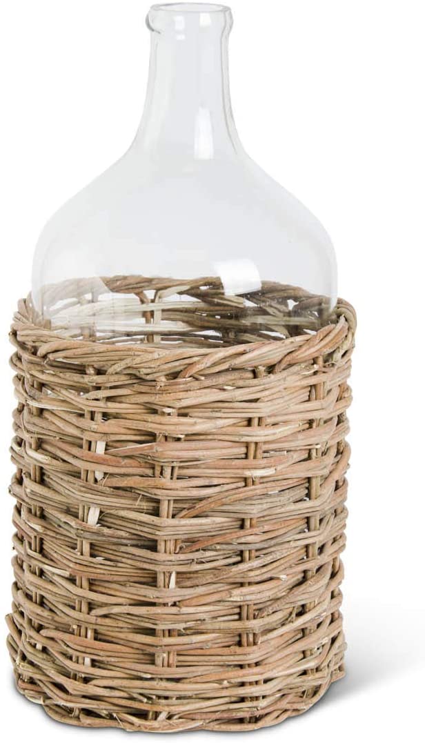 18.25 Inch Clear Bottle in Rattan, Glass and Woven Basket
