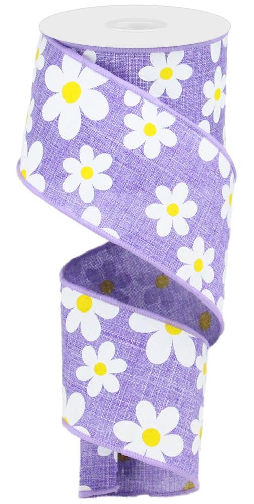 2.5" Flower Daisy Ribbon: Lavender (10 Yards) Summer Spring Floral Wired Ribbon RG0193513