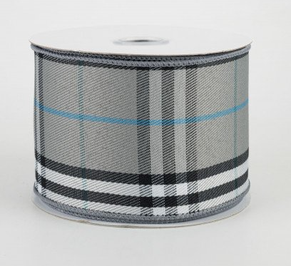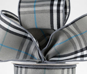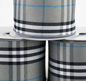 2.5" Plaid Ribbon: Grey, Black, Blue, White (10 Yards)