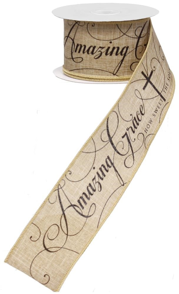 2.5" Wide Expressions Natural Canvas Amazing Grace Wired Ribbon Beige & Black (10 Yards)