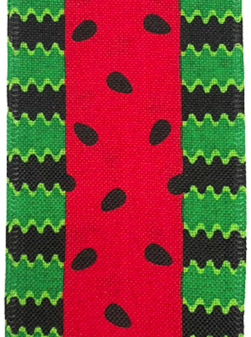 2.5" x 10 yd Watermelon Stripe Linen Wired Edge Ribbon