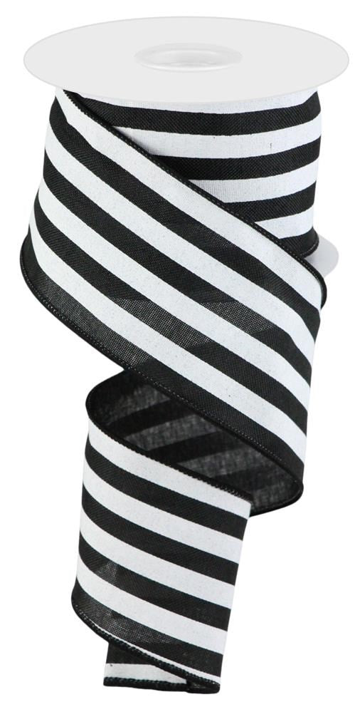 2.5" x 10 Yds Vertical Stripe Wired Ribbon Black & White Christmas, Fall & Halloween