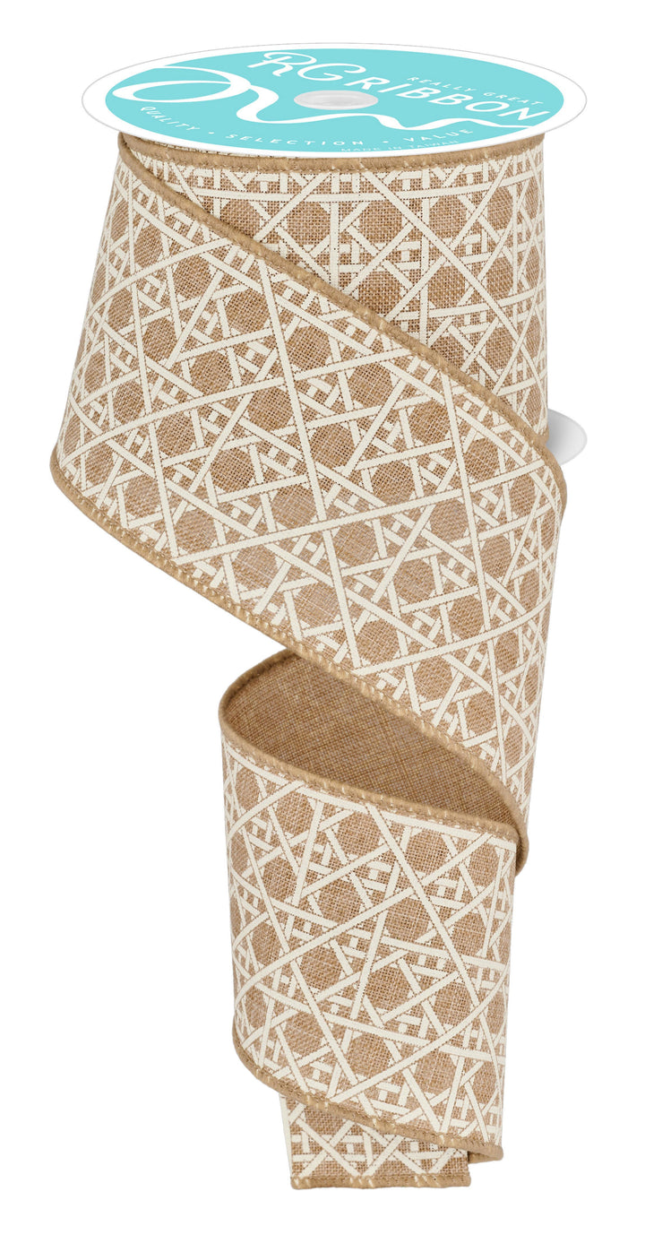 2.5" x 10yd Basket Weave pattern on Natural wired edge ribbon, craft supply