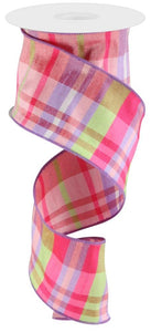 2.5" x 10yd Faux Dupioni Plaid Wired Edge Ribbon, Pastel Colors Pink Green Purple