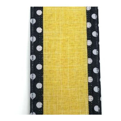 2.5" X 10yd Wired Linen with White Dot Edge Ribbon - Yellow / Black