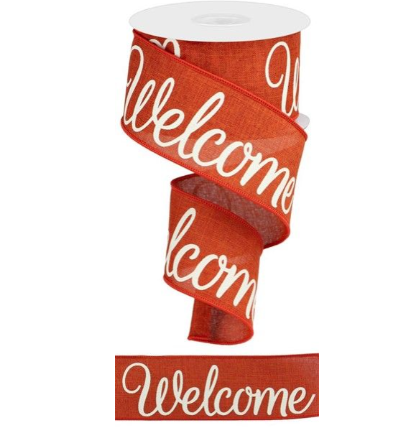 2.5"x10yd Cream Welcome on Rust/Burnt Orange Wired Edge Ribbon