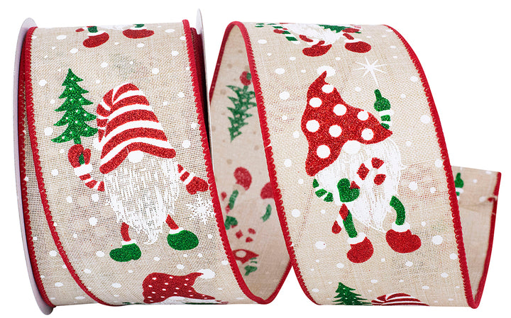 2.5"x10yd Gnome Patrick Wired Edge Christmas Ribbon, Natural