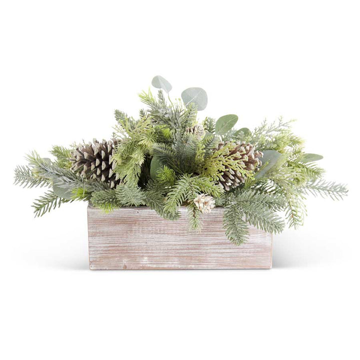 21 Inch Frosted Fir Pine with Eucalyptus and Pinecones in Wood Planter, Green