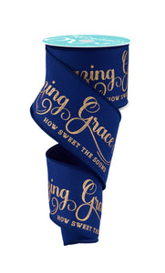 Amazing Grace 100% Polyester Navy Blue/Gold Ribbon, 2.5'' x 10yd, Ideal for Weddings and Funerals