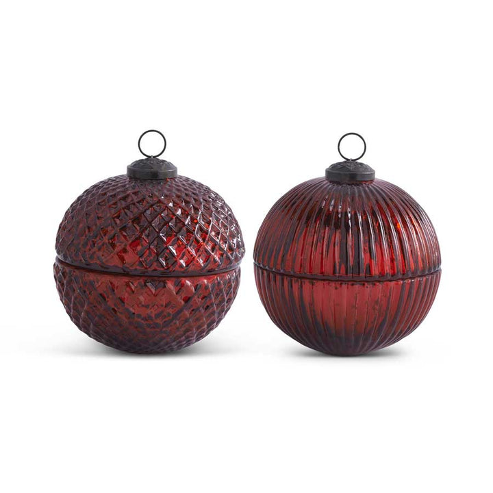 Assorted 5 Inch Filled Red Mercury Glass Lidded Ornament Candles--Sold Individually
