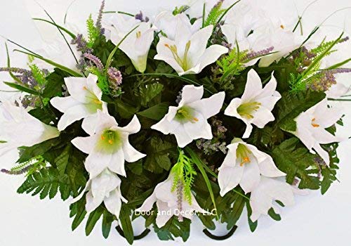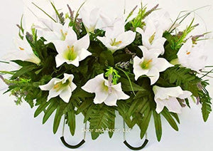 Cemetery Spring Flowers ~Spring white lilly mix~headstone saddle arrangement~cemetery flower service
