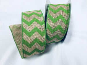 Chevron Burlap Wired Edge Ribbon - 2.5" x 10 Yards (Lime Green)