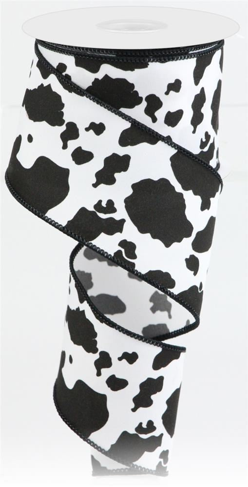 Cowhide Print Wired Edge Ribbon - 10 Yards (Black, White, 2.5 Inch)