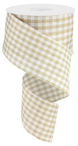 Gingham Check Wired Edge Ribbon, 2.5" x 10 Yards (Cream, Tan)