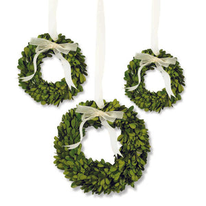 Set of 3 Mini Preserved Boxwood Wreaths with Sheer Bows- 10", 8" and 6" Diameter