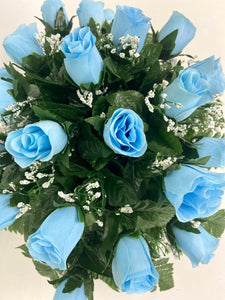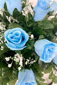 Small Baby Blue Rose Spring Cemetery Flowers for Headstone and Grave Decoration-Light Blue Roses with Baby's Breath Saddle