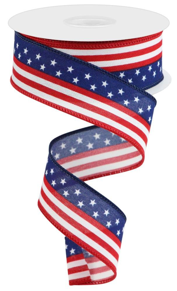 Stars & Stripes Flag Wired Edge Ribbon - 1.5 Inches x 10 Yards (Red, White, Blue)