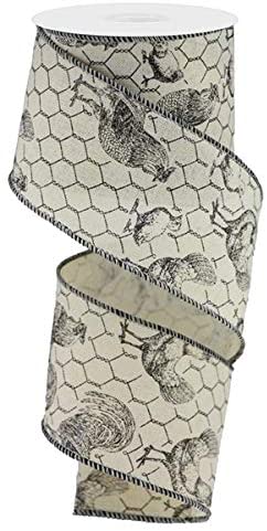 Wired Ribbon Rooster Chicken Wire Farmhouse on Royal Canvas 2.5 Inches x 10 Yards